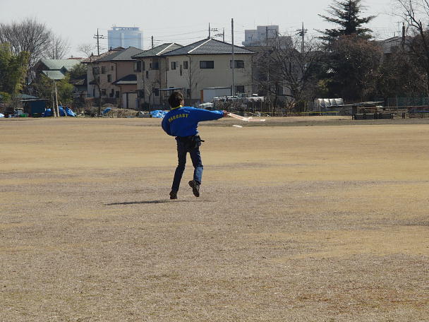 2011.02.27 ![]() いつものグランドです。 きのうと打って変わって穏やかで暖かなグランドです。 お昼近くになって風が幾らか出てきましたが、それでも 3m/s程度でした。 お供はVooDooの2号機とビーバーくん。 いつもは動力機から飛ばし始めるのですが、今日はグランドの片面 をソフトボールの練習をしていたので、ハンドランチからです。 川に向かって投げて、川の上をメインに飛んでいました。 ![]() 桜の木の芽が膨らんできていました。 木に引っかかったままになっている凧とで「春の足音と冬の忘れ物」ってな 所でしょうか。 |