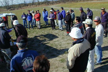 全員でミーティングです。 飛行エリアやウインチレーンの確認などを行いました。 この飛行場はゴルフ場と野球グランドと隣接していますので、 万が一の安全のために飛行禁止エリアが設けてあります。 |