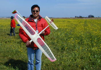 オープンクラスのスタートです。 このクラスの発航はいつ見ても迫力があります。 そして「お約束」のランディング。 定点へはこの様に文字通りピンポイントです。 滑走すると狙いを 定めるのが難しいんです。 TSUNAMIと言うこの機体。 完全に透けちゃってます。 こちらも透けています。 NYXと言う機体のスタビレーターですが、シャーレ心材のバルサ の木目が綺麗に出ています。 まるだオラライトの白を貼ったみた いですね。 今回木村はXantipaでこのサイズ初チャレンジです。 (撮影 加納さん) ドキドキの初ウインチ。 初にしてはしっかりサーマルも捕まえ、良いタイムでフライトを終える 事が出来ました。 この機体、エルロンHLGよりも飛ばしやすく、 大型のラダー機を飛ばしているような感覚でフライトをする事が出来 ます。 色々なミキシングスイッチも間違えずに出来て、「ほっ..」 でした。 (撮影 加納さん) |