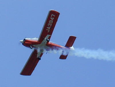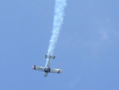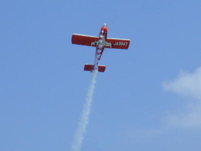 本日の目玉、レッドスバルのフライトです。 最初は2機による編隊飛行、後に一機は着陸、残りの一機でアクロバットを 見せてくれました。 インバーテッドオイルシステムを搭載したJA3947だけが高度なアクロバット飛行 が可能なのだそうです。 なんでも出来るって訳では無いのですね。 ローパスのサービスです。 キャノピーを開けて手を振ってくれています。 こちらの機体にはインバーテッドオイルシステムは搭載されていません。 おそらく、性能いっぱいいっぱいのアクロバットを披露してくれたのだと思います。 共感の沸くフライトでした。 エアロバティック選手権のフライトと比べてしまうと 物足りないかも知れませんが(ウチの奥さんの感想)ですが、機体性能を100% 近くまで引き出したフライトは充分な見応えを感じました。 |