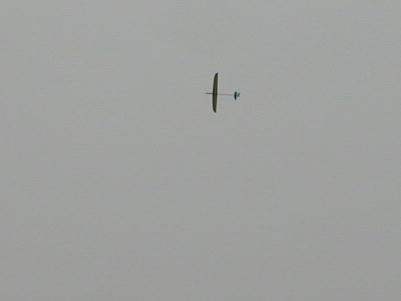 まずはエルロンクラスから競技スタートです。 このクラスのほとんどがF3B機やF3J機です。 今回、ラインも60号と 太めなので、安心してテンションが掛けられます。 ただ、この時点では 弱い背風でしたので高度は今ひとつでした。 定点に向かう機体です。 都合良く目の前を通過してくれました。 ブレーキ を下ろし始める所ですね。 フラップが下がり始めています。 今日がウインチ競技初体験の上代さん。 緊張の発航です。 良い所に降ろせたみたいですね。 HLGの皆さんにはお馴染みのRadina−DLG。 これでもりっぱなエルロン 機ですし、小雨の中ではありましたが良く浮いていました。 ギャラリーからは「SALに負けた....」と言う声も聞かれました。 |