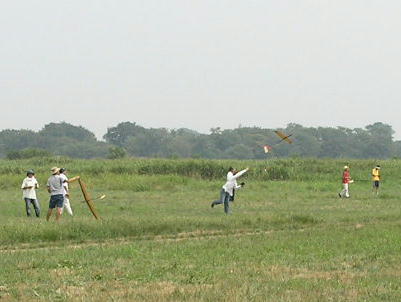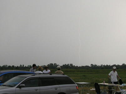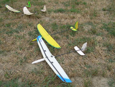 とここまでスケジュールが進行した所で突然の雷雨。 かなり激い雨が降りました。しばし競技は中断です。 でも、涼しくなって、体は随分と楽になりました。 雨が上がり競技が再開されるまでの間、フリーフライトの HLGのデモフライトがありました。この機体、Y尾翼を持っ たSAL機です。 最近のフリーフライトの世界もSAL機が 進出しているようです。 壊れたのではありませんよ。 時間が経つとタイマーが働いて この様に胴体がくの字に折れ曲がります。これにより機体を 壊さず降下させるのです 流郷さんが体験ランチ。 あれ....機体は右に体は左? 左に投げている物は? 流郷さんのパワーに負けて、翼端部がもげてしまったようです。 グラディエーター2も何機か飛びました。 風が吹いた時、どっしりした 跳びが良いですね。 |