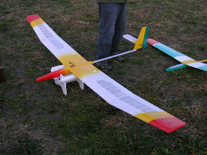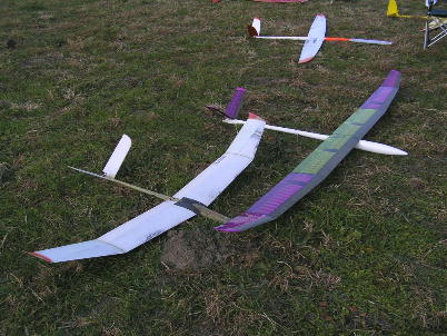 サギッタXCです。 巨大なバルサリブ組機、しかもラダー機です。 朝妻さんのピットです。 モナーク2Mラダー+フラップ仕様とグラファイトです。 組み立て中の池さんの自作ラダー機です。 フルテンションで曳航の出来る 機体です。 加納さんの新作、Xantipa2です。 大きいと思っていたXantipaよりさらに300ミリ近くスパンが長く、それでいて 100グラム軽い機体です。 本日は尾翼をぶつけたり木になったりと散々だっ たようです。 木村のピットです。 Xantipaでオープンクラス、Radina2で2Mクラスにエントリーしました。 これはランチ時にスパー部分から先が吹っ飛んでしまったコラド2000です。 コントロール出来なくなり河原に墜落してしまいましたが、思いの外....と いうか、ほぼ無傷で戻ってきました。 |
