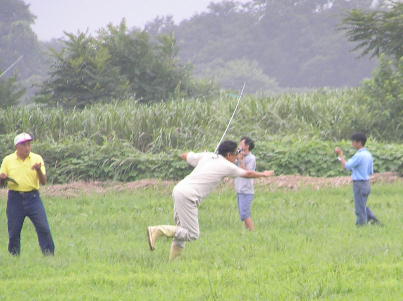 ![]() 開会式です。 ルール解説やフライトエリアの説明がありました。 今回の参加者 は29名で、4グループに分かれて腕を競い合いました。 |