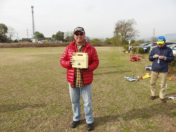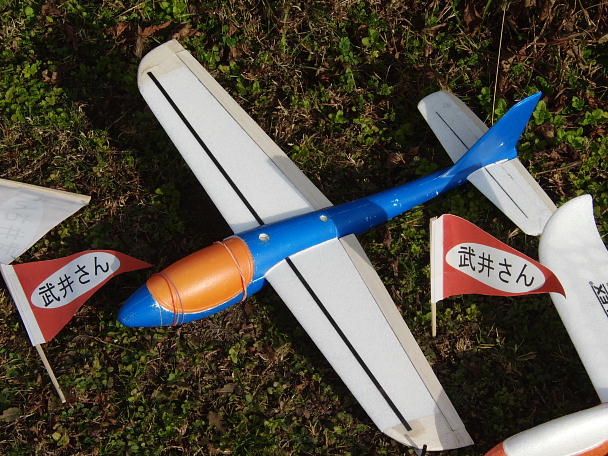![]() 二種目ともいただいてしまいました。 ![]() 二位の佐々木さん。 主翼延長が効いたようです。 三位の金井さん。 フラッペロンでキャンバーコントロールをしていました。 |