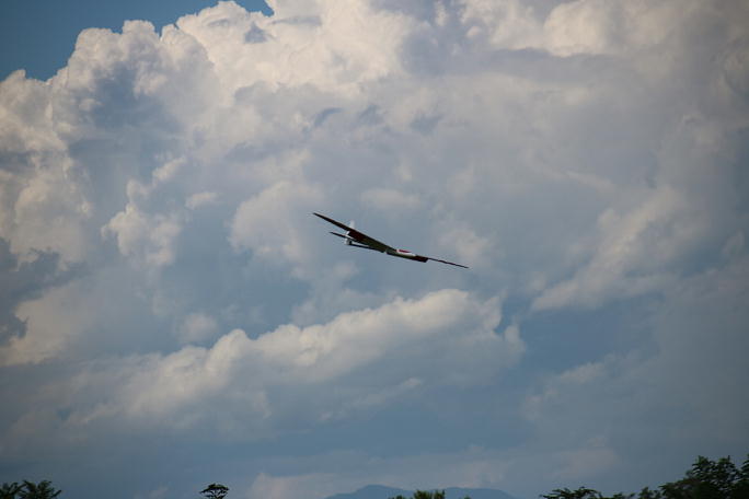 ![]() 2018.08.25、上里模型グライダー場において、2018 2mミーティングが開催されました。 時間が取れたので、 短時間ですが、見学をしてきました。 午後からの見学でしたが、気温が36℃と殺人的な上に風が1m/s前後しかなく、湿度も高くて、とても長く日向にいる 事は出来ません。 ![]() ![]() ![]() ![]() ![]() 丁度3ラウンド目のタスクA、滞空の発航が始まった所でした。 細い曳航索を使って、かなり高い所まで上がって行きます。 機体はミニグラファイトとオメガで8割を締めます。 他にラディナ2mに結城工房のリトルレディなどが飛んでいます。 オメガ以外は設計の古い機体ばかりですが、良い飛びっぷりです。 |