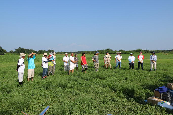 ![]() 開会式の様子です。 主催のステッペンヴォルフの塩沢さんと道山さんから競技の説明がありました。 開会式は8時30分に行いましたが、この時点で風は西寄りで、草刈りとゲージの関係で東寄りの風に変わるまで 競技開始を遅らせる事にしました。 予報では朝から東寄りになるとありましたが、アテになりませんでした。 |