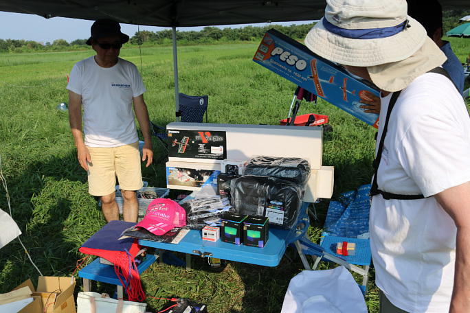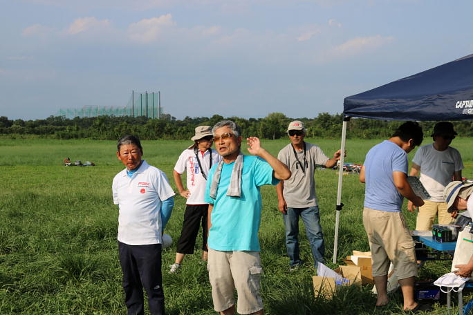 ![]() 2019.08.25 上里模型グライダー場において開催された、第6回F3B POWERS CUPが開催されました。 前の週まで、狂ったような暑さと湿気で「何人倒れるか..」のコンディションから、気温は30℃、比較的湿度の低い コンディションで、日陰に入れば汗が滴る事もありませんでした。 真夏の大会ですが、25名の参加あり、F3BのタスクA(滞空)とタスクC(速度)を2ラウンドして、順位を決めます。 ![]() ずらっとタープが並びました。 機体も日よけが掛けられています。 |
