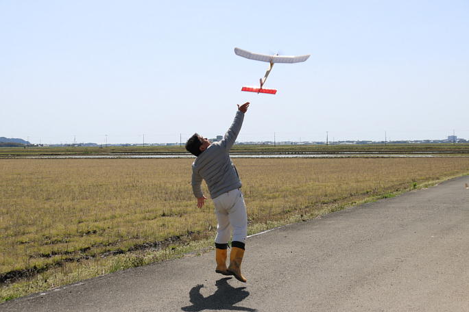 ![]() ![]() ![]() こちらは初めて見た「電動フリーフライト」です。 ブラシレスモーターに2セルLi−po、時間が調整可能なタイマー を備えた機体です。 最初は10秒ほどのモーターランタイマーで50メートルほどの高度を取っていましたが、風が強くなって風下に大きく 流されたためにモーターランを6秒に短縮されました。 それでも視界ボツ寸前までのフライトを見せてくれました。 ![]() ![]() ![]() ![]() ![]() 現地ではF1Cの様に真っ直ぐ上にランチするのが良いとか言われていました。 残念な事に宙返りの後に田んぼに 刺さってしまった機体もありました。 手から離れたらその後の修正が効かないのがフリーフライトの難しくて面白い所なんでしょうね。 |