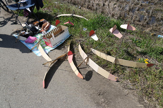 ![]() ![]() ![]() ![]() サイドアームで発航されるHLG−Aクラスです。 スパンは1000oほどで獲得高度は30メートルには届いていない 感じですが、良く調整されていて高度を落とすこと無く上昇角度から返って水平飛行に移っていました。 ![]() ![]() ![]() スーッと風下に流れたと思ったら、サーマルに咬んで風上旋回してきます。 風を読んでのランチではありますが、 選手のみなさんは高確率でMAXをだしていました。 ![]() 直貼りの機体もありました。 太陽が透けて綺麗な機体です。 低抵抗な主翼で足の速い飛びでした。 ![]() ![]() 風が3〜4m/s程あったので、デサマが効く頃にはかなり風下まで飛んでしまいます。 ![]() 羽根を休める機体達です。 ![]() 主翼の前縁が跳ね上がりブレーキが掛かる仕組みです。 ![]() 一面に広がる田んぼですが、もうほとんどの田んぼに水が入るか、湿った状態です。 何処に降りるか判らない フリーフライトです。 水の無い田んぼに降りても泥の洗礼。 水の入った所に降りてしまったら、すぐさま一本釣りで回収します。 |