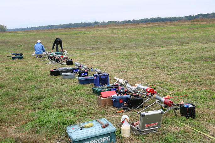 ![]() ![]() 開会式の様子です。 飛行場長からフライトエリアなどの説明がありました。 今回はタスクCのコースが新しくなり、 その説明もありました。 曇天、微風でこの時点では気温は11℃程しか無く、10月ではありますが、ダウンジャケットを着込む選手も多く 見られました。 ![]() ずらっと並んだウインチ、この光景も久しぶりです。 ここまで回復した上里では、11月にF3B日本選手権も控えている事も有り、各選手力の入り具合も違います。 |