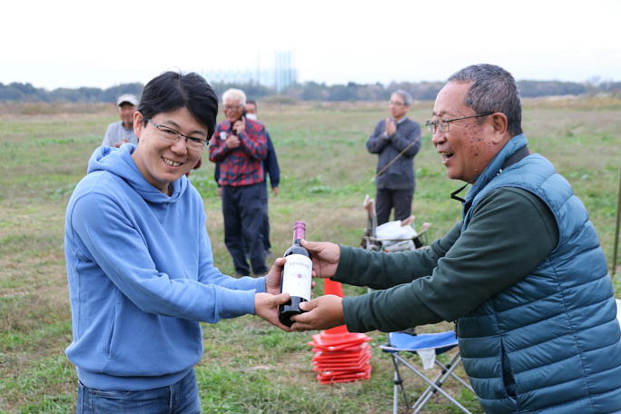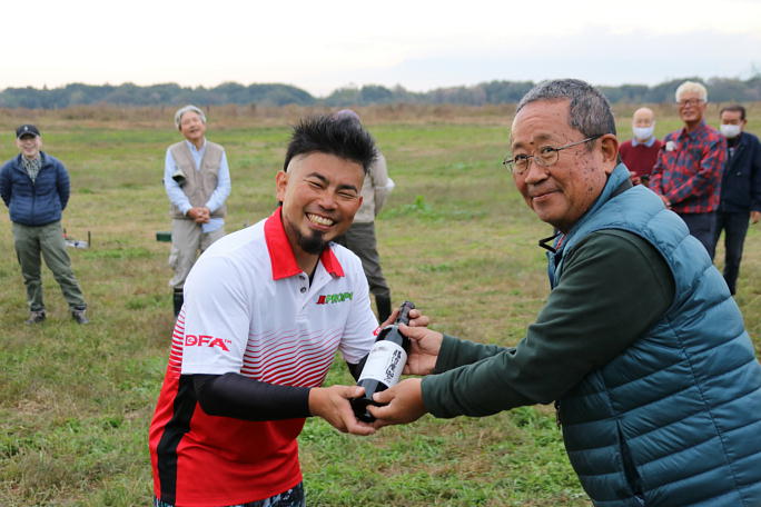 ![]() 閉会式の様子です。 10位までの順位が発表されました。 ![]() 優勝は櫻井尚人選手。 宮川会長から賞品の山梨ワインが手渡されました。 ![]() 二位の岩楯選手。 ![]() 三位の鈴木選手。 ![]() 入賞のみなさん、おめでとうございます。 |