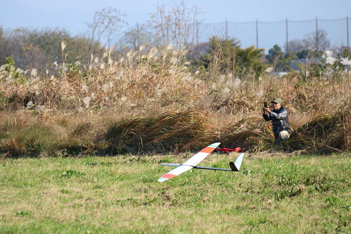 競技は一日目に1ラウンドのタスクA、B、C、2ラウンド目のタスクAと進行しました。 午前8時スタートの 滞空競技なので、サーマルも期待出来ない状況の中、キッチリとMAXを出してきます。 ![]() ![]() ![]() 午前の早い時間、西風の着陸は難易度が高くなります。 ウインチレーンを幅広く取っている分、着陸エリアが狭く なってしまい、飛行場の境界をかすめるようなアプローチになります。 着陸シーンをカメラに収めようと、鳴瀬の木川田さんが茂みに潜んでいます。 |