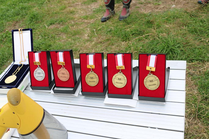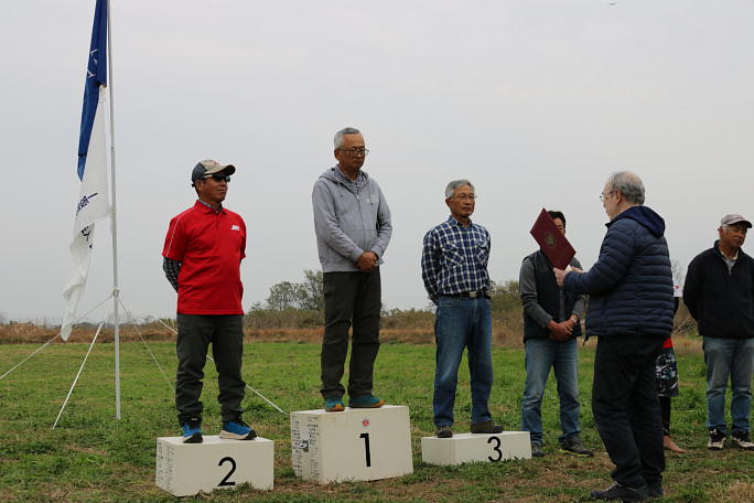 ![]() 全ての競技を終え、表彰式と閉会式が行われました。 陪審員の加納さんから競技報告が行われました。 ![]() 入賞者に手渡されるメダルです。 6位入賞者にまでメダルが渡されます。 ![]() 表彰式の様子です。 R/Cグライダー委員会 委員長の西宮さんから賞状が手渡されます。 ![]() 入賞者のみなさんです。 8ポイント差で迎えた最終タスクで逆転劇のドラマが生まれました。 第一位 川村さん 第二位 小洞さん 第三位 児山さん 四位 吉田直継さん 五位 櫻井さん 六位 吉田正秀さん みなさん、おめでとうございます。 ![]() |