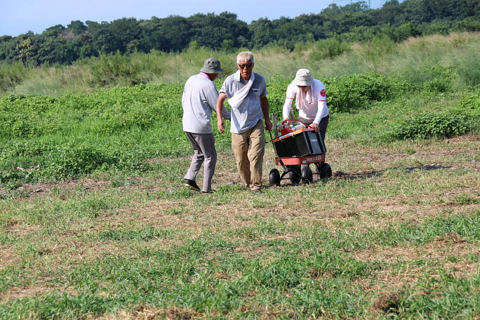 ![]() ![]() 開会式の様子です。 この時点では気温は25℃と、この時期にしては涼しい気温です。 ですが湿度が高く、動くと 滝の汗になります。 ![]() 東風で順風発航になるように、ウインチと大会本部の位置は通常と90度振った位置になっています。 今までの発航 ポイントは画像の左端に写っているリターンプーリーの場所になります。 |