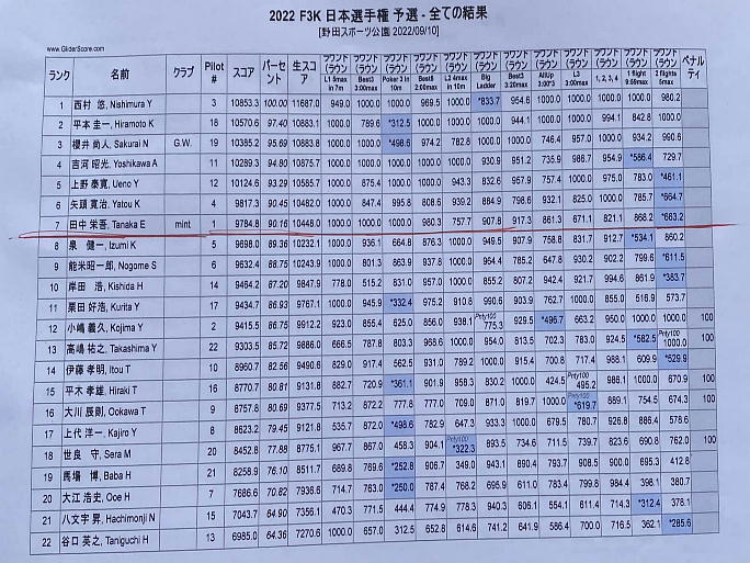 2022年 令和4年度 F3K日本選手権 2022.9.10〜11