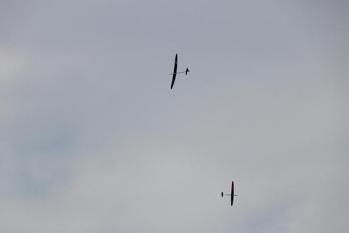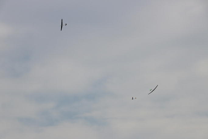 リブ組クラスのスタートです。 ![]() ![]() ![]() リブ組クラスは今まではサギッタやバードオブタイム等が常連でしたが、今回はRES機が多くフライトをしました。 元々曳航用の機体ではありますが、4kgまでのテンション用の機体なので、欲を出すと痛い目に遭います。 ![]() 脱索をした機体を再曳航するために急いで回収しています。 今回はウインチの余裕があったので、リランチも許されています。 ![]() ![]() 入手のし易いスカイモデリングの機体が多く見られました。 ![]() 実機、ウルトラライトプレーンとツーショット。 実際には100メートル以上離れていますが、並んで飛んでいる様にも 見えます。 ![]() ![]() この機体は昔のF3B機のエリプスの胴体にサギッタの主翼を改造して取り付けた機体です。 翼端はエリプスに寄せて ありました。 |
