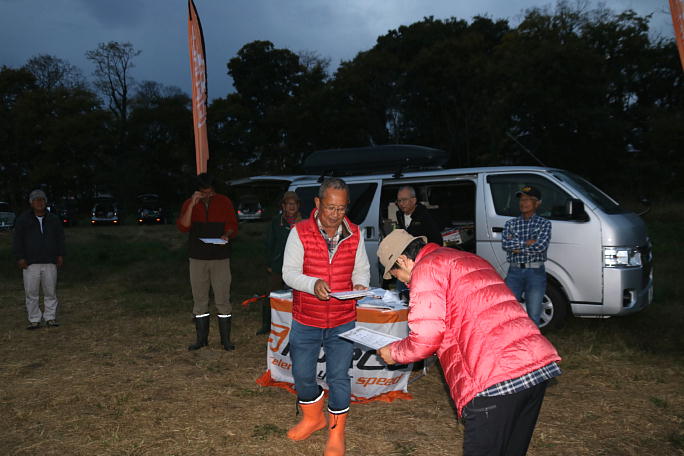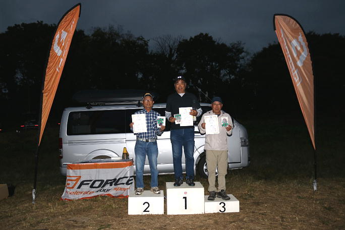 成績発表です。 雨雲も低くなってきている事もあって、薄暗くなってきました。 ![]() 宮川さんから賞状とメダルが手渡されます。 ![]() オープンクラスの入賞者の方々です。 オープンクラスは15位まで一位の得点の90%と接戦でした。 第一位 吉田さん 第二位 天田さん 第三位 莅戸さん ![]() リブ組クラスの入賞者の方々です。 第一位 莅戸さん 第二位 大高さん 第三位 木村 ![]() 2Mクラスの入賞者の方々です。 第一位 蟻坂さん 第二位 児山さん 第三位 岩淵さん 皆さん、おめでとうございます。 |