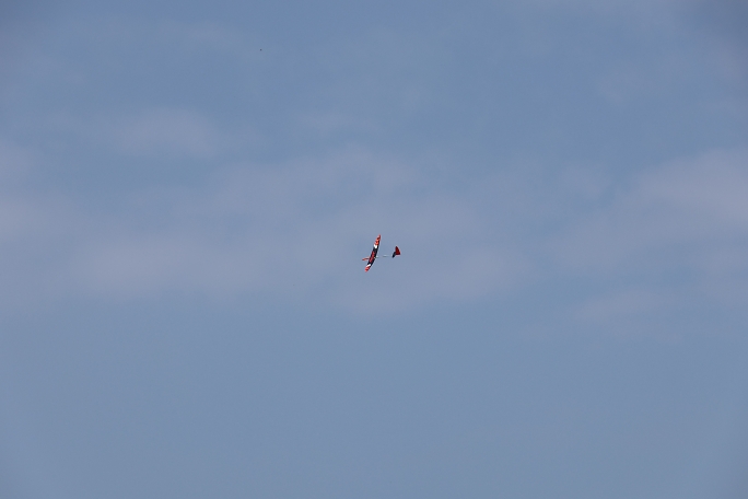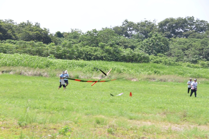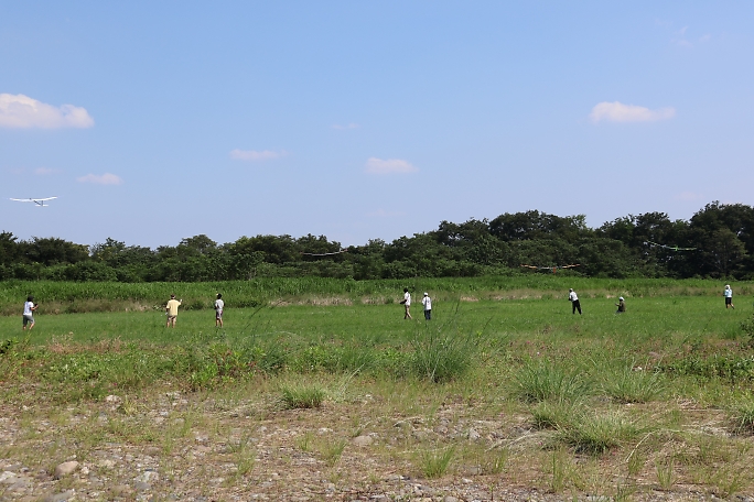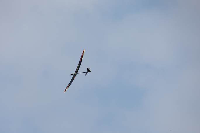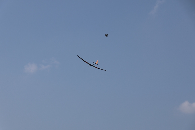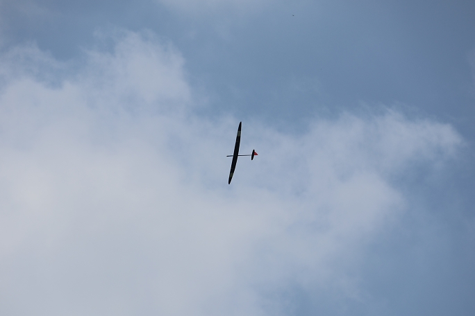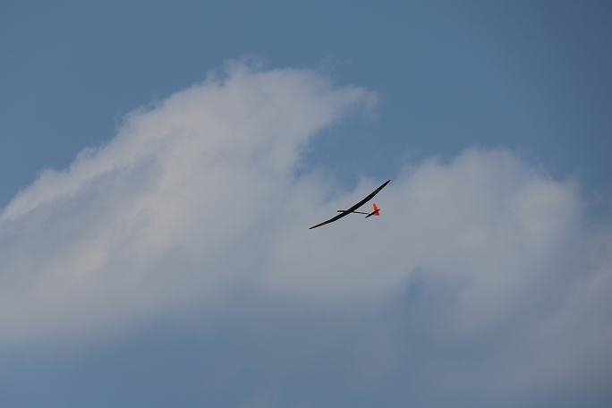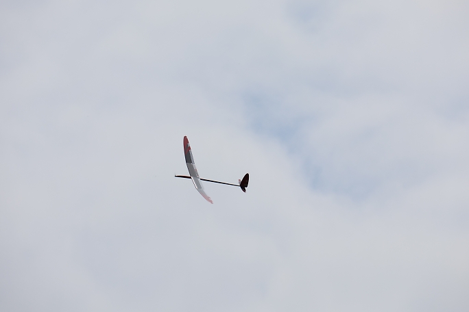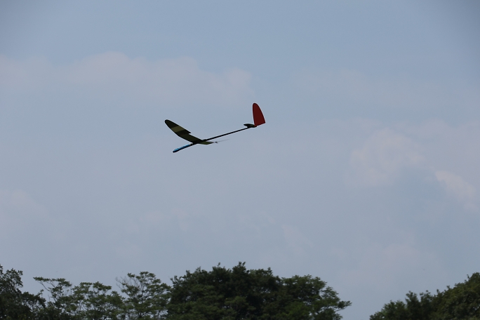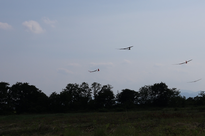 ![]() ![]() ![]() ![]() 発航はF5J独特の一斉で同じ方向に発航します。 また、衝突を防ぐために発航後3秒は進路変更が出来ません。 発航後は30秒間のモーターランが許されますが、ただただ高度を取るのでは無く、サーマルの発生を予想して、そこに 機体を持っていくことに神経を使います。 モーターランで高度を上げるとその分減点されるので、上昇は最低限に留めたいのです。 普段飛ばすときは50メートル位でモーターを止めて、そこから10分のフライトが出来ていますが、今日のコンディション は中々の高難易度で、150メートル以上の高度が安全圏でした。 ![]() 撮影 西村さん フィールドでは2m/s程度にしか感じない風ですが、上空はかなりトリッキーに荒れていて、1400gのExplorerQは 機速が保てず手こずりました。 最終ラウンドで300gのバラストを積んで、ようやく納得の行くフライトが出来ました。 |