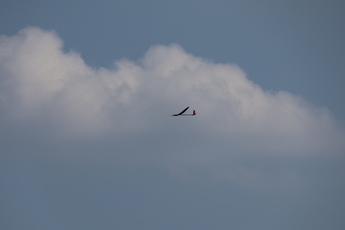 ![]() ![]() 今日は100メートル当たりに所謂逆転層が絶えず発生していて、よっぽど強いサーマルを掴まない限り下から上がる 事は難しいコンディションでした。 気温は32℃まで上がりサーマルの発生はあるはずですが、冷たい風のせいで サーマル自体が小さくて乗り続けるのが難しいサーマルです。 ![]() 黒いシミの様な物は「隼」らしき猛禽類です。 シャツターを切る前まで翼を広げて滑空していたのですが、機体に 驚いて丸まってしまいました。 ![]() 比較的低い位置にポコポコと雲が発生しています。 絵的には映えますが、飛ばすのを難ししているものだと思います。 く |