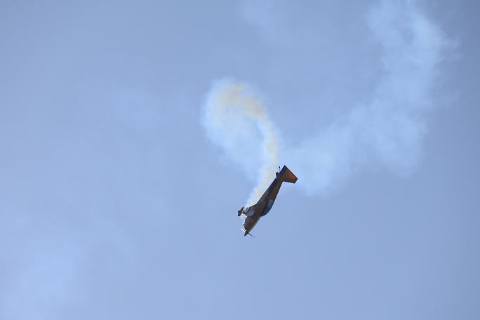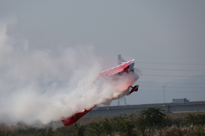 ![]() ![]() ![]() Muicle Bipeとプログラムにあった複葉機のアクロフライトです。 もしかするとIMAC機以上の機動力でのフライト でした。 |
