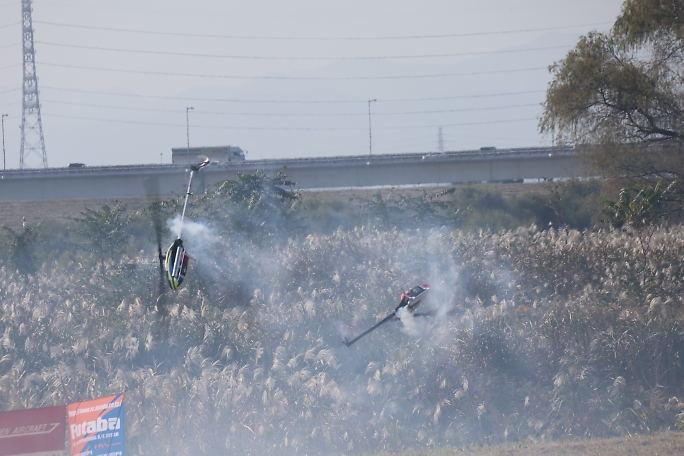 ![]() ![]() GPヘリのデュエットフライトです。 素晴らしいシンクロでした。 |