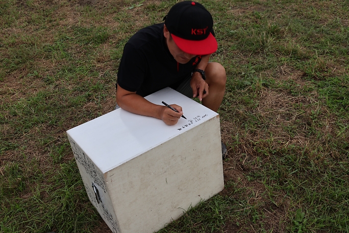 塗り直して綺麗になった面の表彰台に初めて名前を書き込むことになりました。