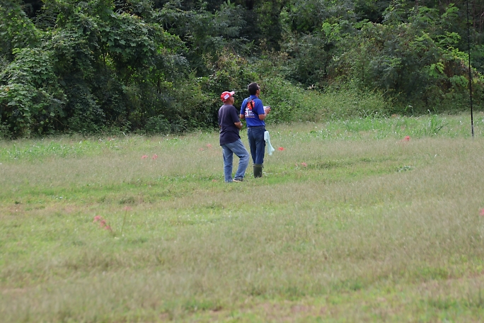 天田選手は飛行制限ラインのギリギリを攻めるために、ラインが見渡せる場所まで移動しています。