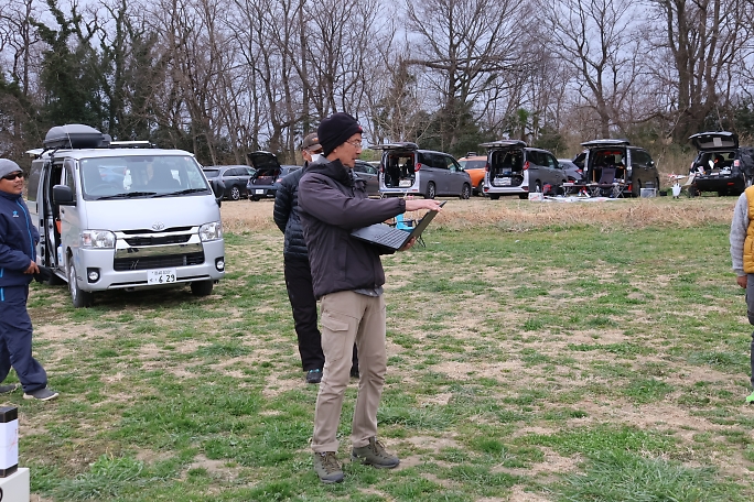 集合写真の時点では太陽も覗いていましたが、一日を通して曇りベース、朝方は風も強めに吹いて3月にしてはとても