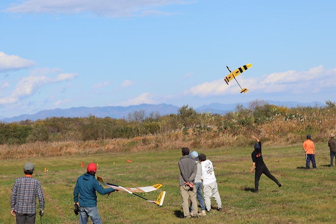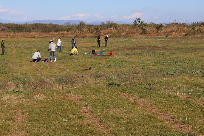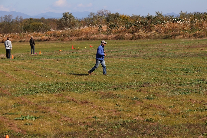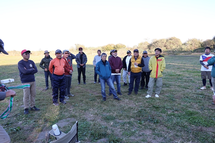 ![]() ![]() 開会式の様子です。 朝方は気温が10℃を下回り、今シーズン初のダウンを着込む選手も見られました。 風は2〜3m/sですが、4m/sを越える時間帯もありました。 軽い機体は風下から戻るのに苦労していました。 飛行場長からは飛行エリアの周知がありました。 ![]() ![]() 競技の説明は莅戸さんです。 開催の敷居を低くするために、積極的にローカルルールを取り入れて、競技をやりやすく する工夫をしています。 |