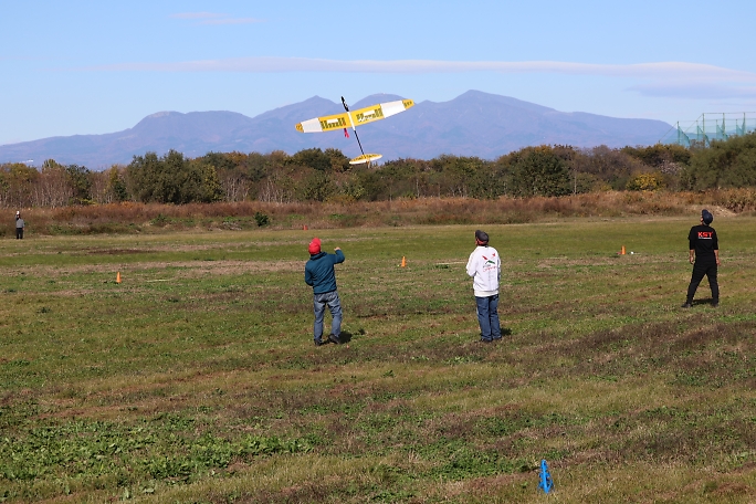 ![]() ![]() 競技スタートです。 フライト時間は6分ですが、作業時間を9分取っているので、ランチミスなどはMAX時間に食い込む 事無くリカバリーができます。 競技フィールドには1チーム3名(パイロット、ジャッジ、リトリブ)が入る事が許されます。 特にリトリブ担当になった 人は、発航後に隣のレーンに索が降りてしまう場合があるので、直ぐに索の回収をしないと行けないので良い運動量 となります。 ![]() ![]() ![]() ![]() 風の加減にもよりますが、15メートルのゴムと50メートルの索で50〜70メートルの初期高度がとれます。 通常は生ゴムチューブを使用しますが、生ゴムチューブは経年劣化が激しく、ゴムの公平性が保てないので、今回 はシリコンゴムのチューブを使用しました。 テンションは4kgに調整されます。 離脱時にズームをするかしないかの見極めも大事です。 ![]() 索の回収です。 木村は5ラウンドで13000歩歩きました。 ![]() リトリブ担当から見た発航風景です。 シリコンゴムが重いので、離脱後に「ボトボト」ゴムが落ちてくるイメージです。 ![]() ![]() ![]() ![]() ![]() ![]() 第四ラウンドは風が強くなって来て、4m/sを越える事もありました。 機体が耐えきれずに主翼と胴体が泣き別れた 機体もありました。 木に乗ってしまった主翼は無事に回収されました。 ![]() ![]() ![]() 着陸風景です。 バルサの胴体になので、フワッと降ろしたいのですが、ついつい定点に向かって突っ込ませてしまいます。 |