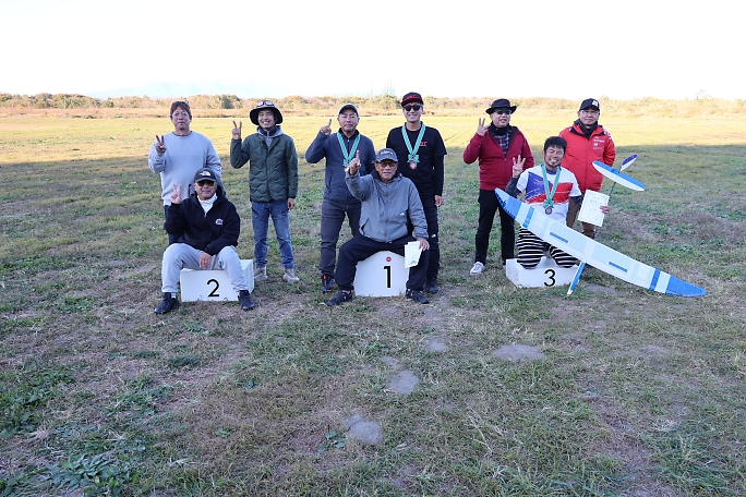 2025.11.15 上里模型グライダー場において、2回目になる上里開催のF3L関東大会が開催されました。 22名の選手が集まり、日暮れの早くなった中、5ラウンドの競技が行われました。 F3LはRESグライダーと呼ばれる、木材主体のラダー、エレベーター、スポイラーだけが許された2mクラスの グライダー競技で競技も定着しつつあります。 曳航道具もゴムとテグスだけと簡単な物で済みます。 |
