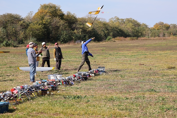 ![]() ![]() 競技開始です。 オープンクラス、リブ組クラス、2Mクラスの順に進みます。 オープンクラスは制限無し、リブ組クラス はカーボンDボックスやフルプランク以外のリブ組機、2Mクラスは翼長が2M未満ならなんでもOKです。 2M機でオープン、2Mクラスのダブルエントリーや、RES機でフルエントリーも可能です。 木村がオープンクラスとリブ組クラスのダブルエントリーの上に、人出が足りないために常時出張っていたために、 空き時間で撮った写真となります。 御了承下さい。 ![]() ![]() ![]() オープンクラスはF3B機やF3B機がメインになります。 いままではF3B機でのエントリーが多かったと記憶していますが、 今回はF3J機の数が増えていたと思います。 ![]() 作業時間に余裕があるので、リランチもフライトタイムに食い込まないで出来ます。 リトリブ担当は上がった機体の 様子を見て、留まるか引き上げるかを判断しています。 ![]() ![]() |
