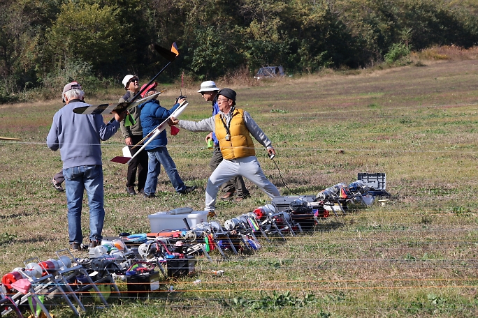 宮川会長とスポンサーのG−Force代表 櫻井さんからのご挨拶がありました。 いつも沢山の景品をありがとう ございます。 ![]() 選手は総勢20名で、オープン、リブ組、2Mの3クラスフルエントリーの選手もいます。 ![]() ![]() 広くなった駐車エリアでゆったりピットですが、ほぼ一日日陰となるため朝は寒いです。 機体の準備が済めば、日向に 移動するのが「吉」のようです。 |