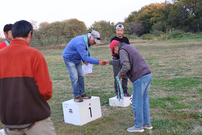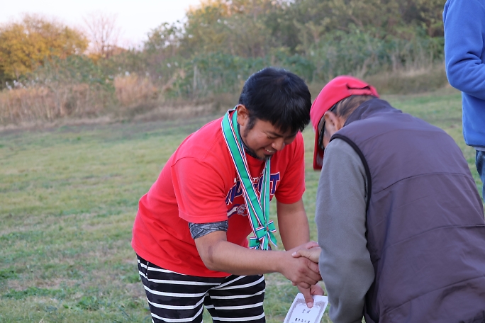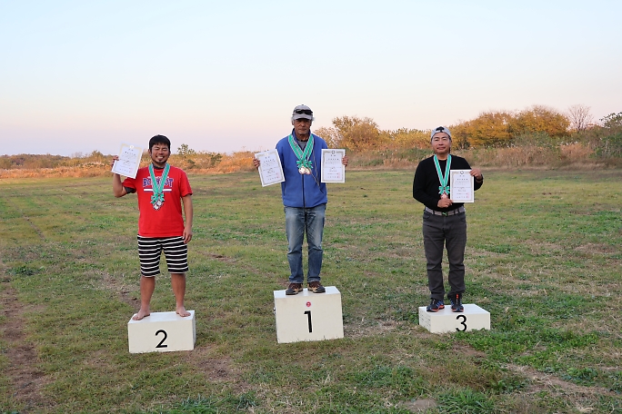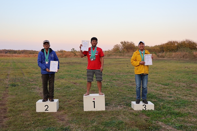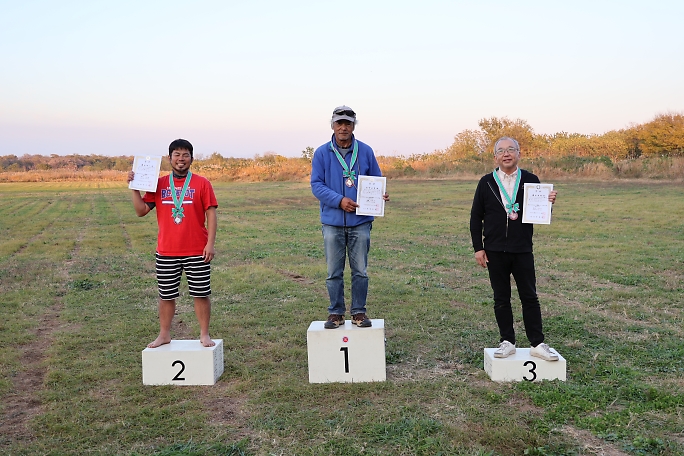 ![]() ![]() 表彰式と閉会式です。 各クラスの成績発表を行いました。 フィールドの半分は、もうすっかり日陰です。 ![]() ![]() 表彰状とメダルの贈呈です。 櫻井尚人選手は既に2個のメダルを掛けていますね。 |