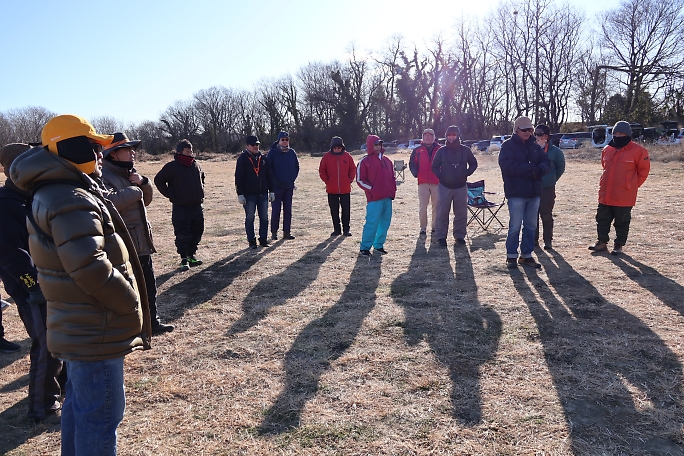 開会式の様子です。 参加人数は17名とコンパクトではありますが、新年一発目とあって、寒さもめげていません。
