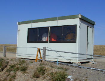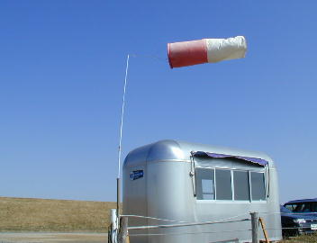 御覧の様な強風です。 さすがは群馬の「からっ風」です。 とても飛ばせる様な状況ではありませんでした。 飛行場の端に設置してある仮設トイレは今にも吹き飛ばされそうで、「3匹のこぶた」 のわらの家の様でした。 |