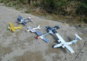 ミニプレーン群です。 リチウムイオンバッテリーと高性能モーターのおかげで、こんなに色々な ミニプレーンが飛ばせる様になりました。 |