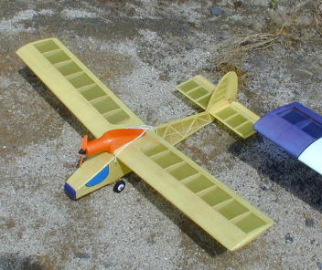 関山さんのミニプレーンです。 ゴム動力機を改造した可愛い機体ですが立派なフライトでした。 |