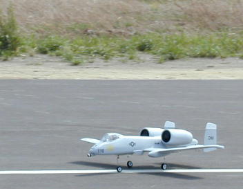 都築さんのA−10です。 ツインダクト、エアー式の引き込み脚を装備してこのサイズの割には軽快に 飛行していました。 |