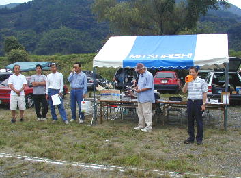 開会式です。 競技方法やフライトエリアの説明がありました。 競技は通常ランチクラス、オープンクラス(ランチ方法無制限)、パイロン競技が 行われました。 |