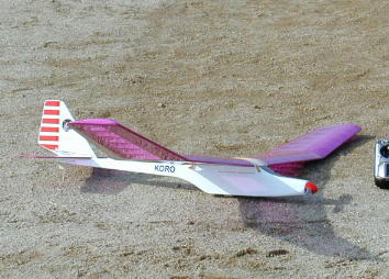 本郷さんのパストラルです。 綺麗に成形され、ソアラーっぽくなっています。 こちらはスカイカンガルー号。 旧スカイカンガルー号に近づけるべく、主翼及び胴体の延長を行ったそうです。 本郷さんはラジコン再開一年半とのことですが、ラジコンの足がかりになったのが この機体との事です。 |
