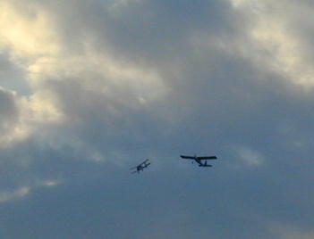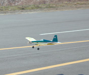 ねこみんさん、パイパーJ3のエンジン始動です。 排気煙をなびかせてテイクオフです。 限りなく実機に近い音を響かせてのフライトです。 大きな飛行機は良いですねぇ。 |