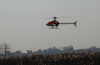 才川さんのLogoです。 ブラシレスモーター+16セルでパワフルフライトを見せてくれました。 音はほとんど実機のジェットヘリのようです。 「こうき君」号。 今回は50プロダクトの新型ギヤユニットを搭載してのフライトです。 |