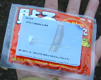 Dokさんこと大和の木村さんの「空1号」です。 初めて作ったHLGとの事ですが、非常に良くできています。 木村も飛ばさせていただきましたが、とても良い感じでした。 Dokさんが差し入れてくれた「使い捨てカイロ」 とても寒かったので、助かりました。 |