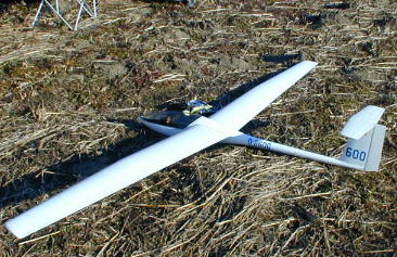 朝一番、機体の調整に余念のない選手の皆さんです。 F3B機などの多チャンネル機が多いので、調整も真剣です。 こちらは小太刀さんのスケール機、「ASW27」です。 他の選手が出してきたスケール機「DG600」に触圧され よーし、と組み始めました。 スパンは4メートル以上あります。 こちらがそのDG600です。 |
