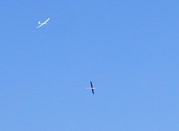 一昔前は白一色のイメージがあった競技用グライダーですが、 最近は他の機体と区別を付けやすくするためにカラフルになってきました。 |