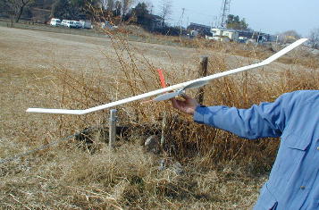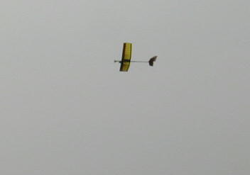優勝候補、金井(孝)さんの機体です。 ダイレクト仕様のペラはユニオンの145ミリの物が多く、このペラが2000 rpm台程度で回っています。 金井さんの機体でも上昇力は毎分1メートル程度です。 30分MAX、ループ、ロール、背面全てクリアで文句なしの優勝でした。 地面に置かれた送信機。 30分MAXを目指してフライト中? トリムで旋回させて両手はポケットへ。 朝早くて大変寒かったんです。 ループやロールを行うため上空へ上げるためにはサーマルハントも 重要なポイントとなってきます。 真下会員の機体です。 主翼は発泡スチロールの切り出しにプライスパンを貼って強度を出しています。 住谷会員の機体です。 こちらは既存のHLGにモーターとバッテリーをボルトオンした物です。 プロペラが取れた方が良く飛んだと言う..... 加藤会員の機体です。 ライトプレーンの竹籤主翼を採用。 玉虫型飛行機みたいです。 金井(敦)会員の機体です。 上手にサーマルをハントして30MAX達成で2位GETです。 こちらはバルサリブ組の主翼を使用しています。 金井(英)会員の機体です。 企画を発表して一番最初にフライト成功の連絡が入ったのがこの機体です。 QRPのトンビーの主翼を使用しています。 で、木村の機体です。 他の人たちと違い、唯一飛行機タイプです。 バッテリーを壊して違う物を使っているのでその点とMAXフライトが 取れませんでしたが何とか3位に入れました。 |
