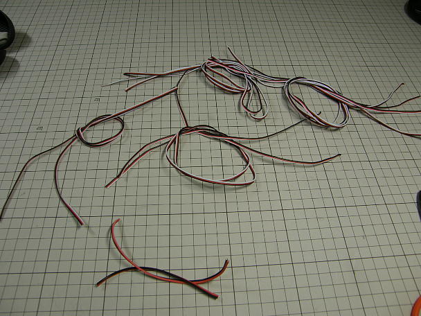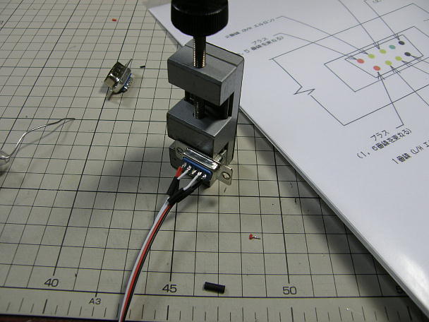 ![]() 先ずはワイヤーハーネスの製作からです。 コード類を必要な長さに切って、部署毎に束ねておきます。 手前の2Wの物は、電源用なので26AWGの物です。 ![]() 受信機用のコネクタを作ります。 コネクタ端子は愛用のカシメ機でカシメます。 芯線部分は1.6ミリで、被覆を 0.5ミリから1ミリ巻き込むように。 被覆部分は1.9ミリでカシメた後に、1.6ミリで締めます。 ![]() 出来上がったコネクタとコードの付け根部分にはスーパーXを塗って保護します。 ![]() サーボと対向するコネクターは2.5ミリピッチのピンヘッダーです。 こちらもハンダ付け後、シュリンクチューブを 掛けて、付け根にスーパーXを盛って保護とします。 ![]() 主翼、胴体連結用のD−SUB9ピンコネクタには、プラスとマイナスの電源部分を束ねて、ヨビハンダを施して おきます。 ![]() 自作のコネクタパターン図を見ながらハンダ付けします。 全機同じパターンにしてあるので、基本ね主翼の 乗せ替えが可能です。 ![]() シュリンクチューブをシュリンクさせたら、首部分にスーパーXを盛って補強とします。 ![]() ![]() スイッチの組み立てです。 安いスライドスイッチを使います。 電源と充電用のケーブルを作ります。 こちらもハンダ付け後ん接点の絶縁も兼ねてスーパーXを盛っておきます。 ![]() 完成したワイヤーハーネス一式、一機分です。 |