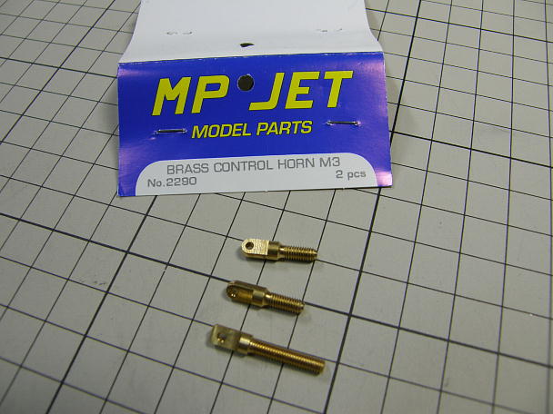 ![]() エルロンとフラップのコントロールホーンは、キットの物は使わず、MP−JETの物を使用します。 左がキット付属の物で、左がMP−JETの物です。 キットの物しなぜか角が立っています。 |